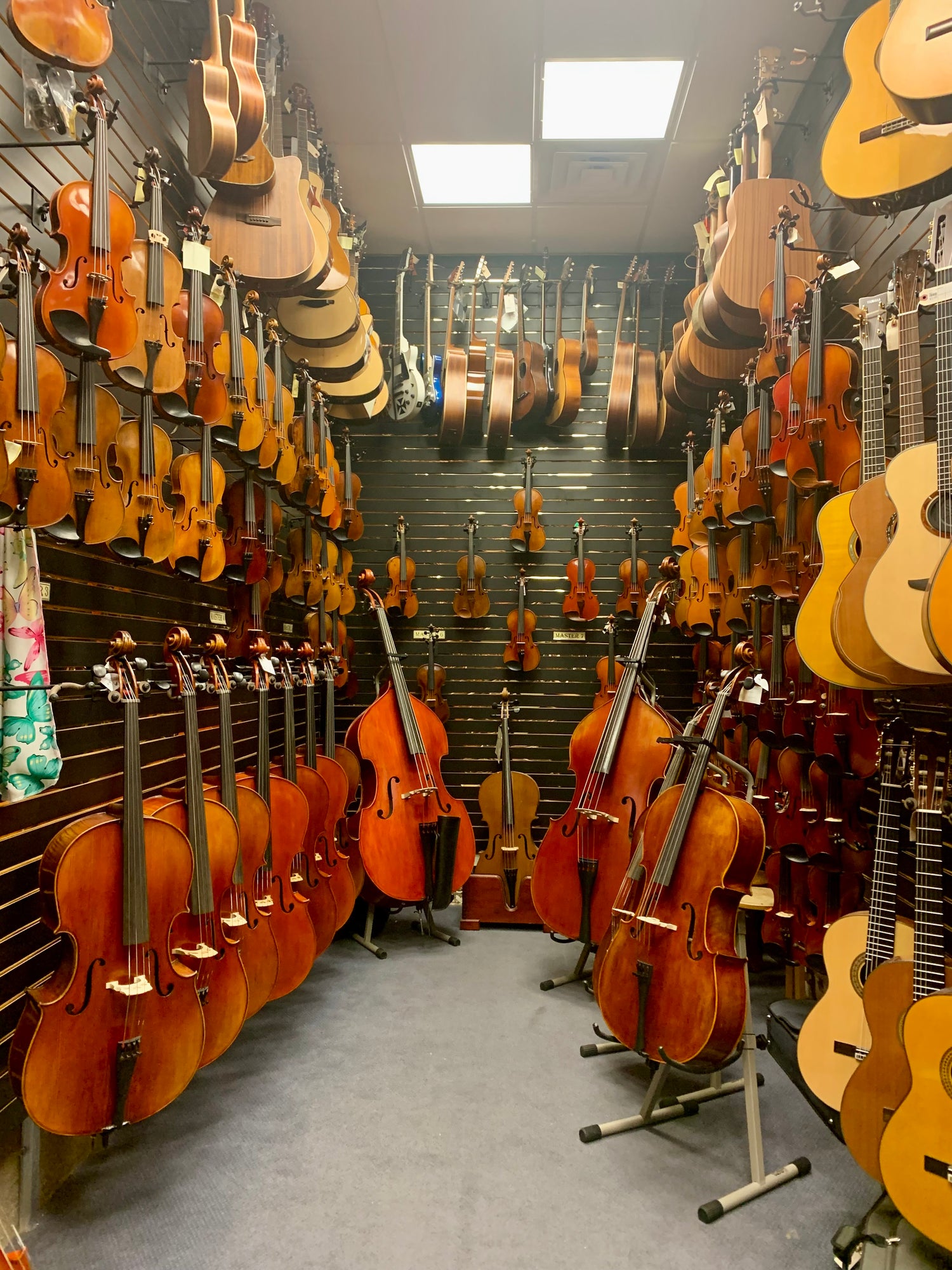 Our school is located on the second floor of Golden Music Co. Golden Music offers instruments for sale and rental, along with luthier and repair services. The Golden Music store serves both pro and beginner musician needs, with a wide selection of gear, accessories, books as well as a collection of rare and fine violins. In addition, Golden Music will be debuting recording and studio services from pro level sound engineers in 2024.